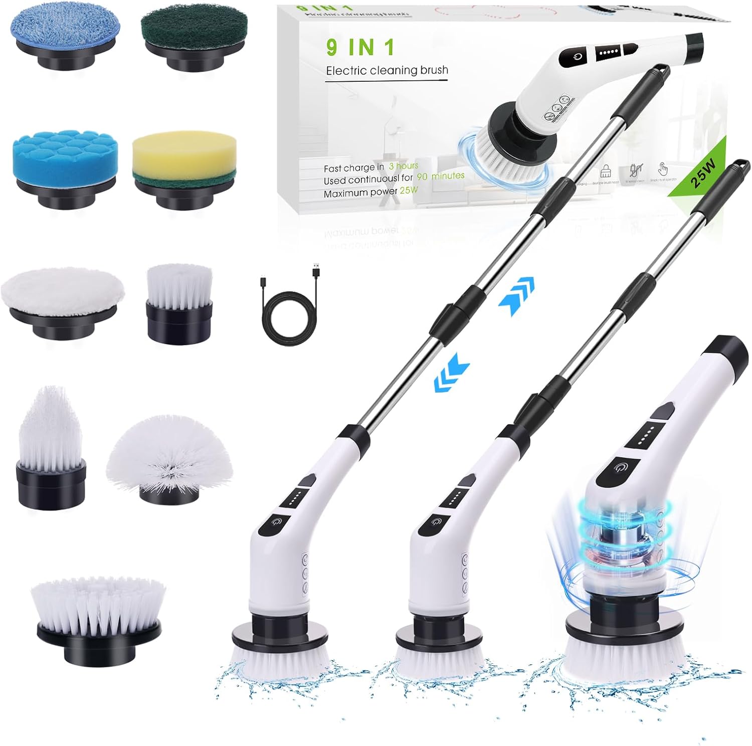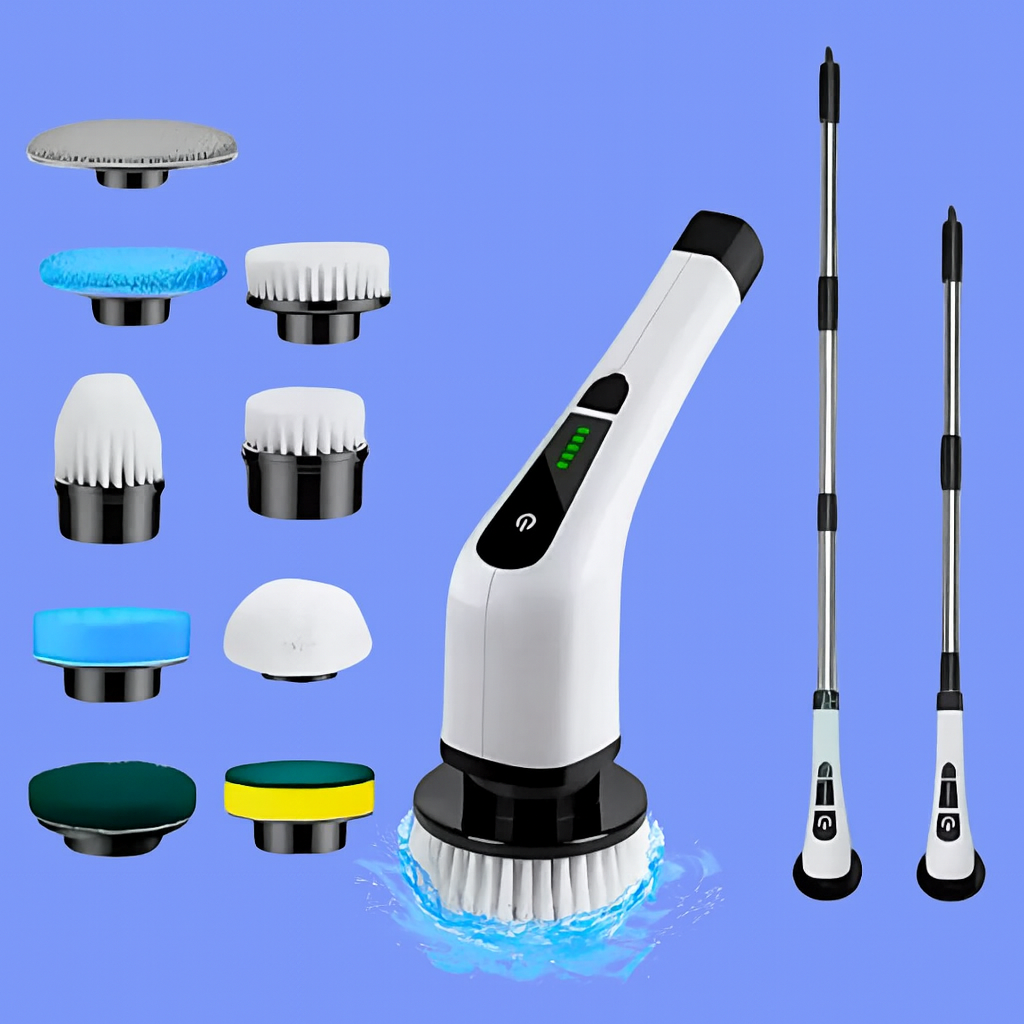 🔄 9 accesorios intercambiables: para adaptar el cepillo a cualquier superficie—azulejos, suelos, muebles o juntas—y lograr una higienización profunda y personalizada.
